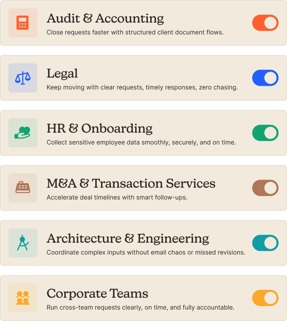 The all-in-one cross-organizational collaboration portal for professional services. Structured, branded, and built on behavioral science, so work finally moves forward without chasing.