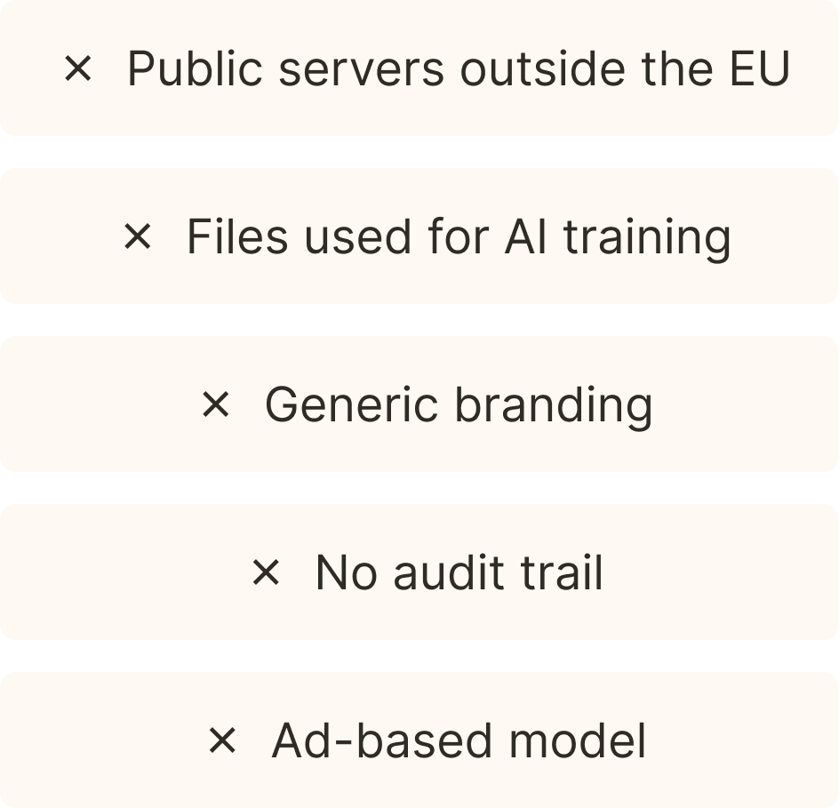Unlike consumer tools, Alkmist Send is made for regulated, privacy-sensitive industries. Audit, accounting, legal, tax, consulting, where a file isn’t “just a file,” it’s confidential evidence.